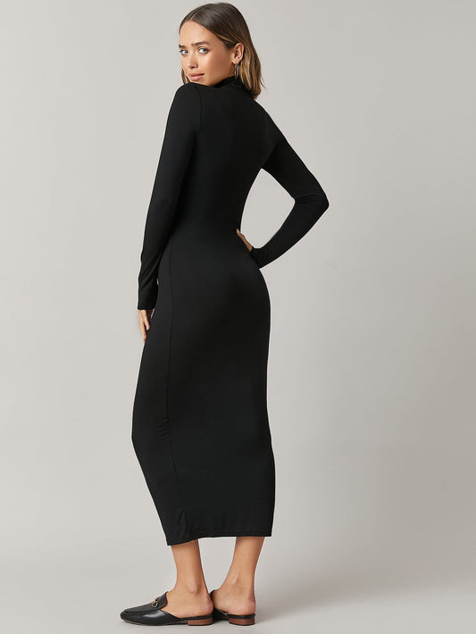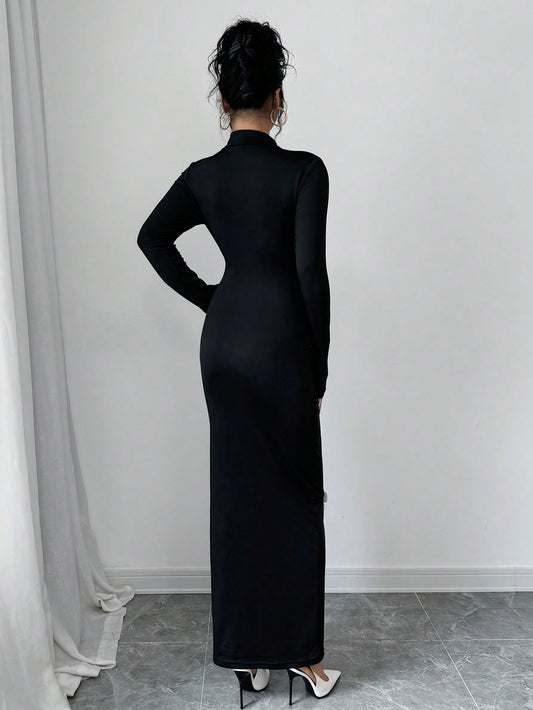 فستان ضيق موحدة اللون تجاعيد فتحة للفخذ