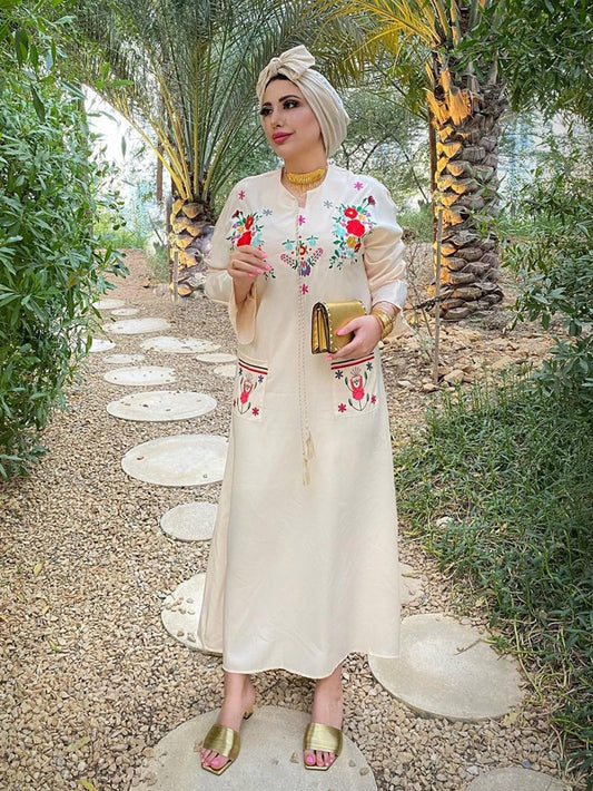 فستان طويل أنيق للنساء مع طبعات زهرية