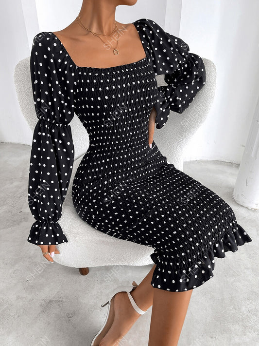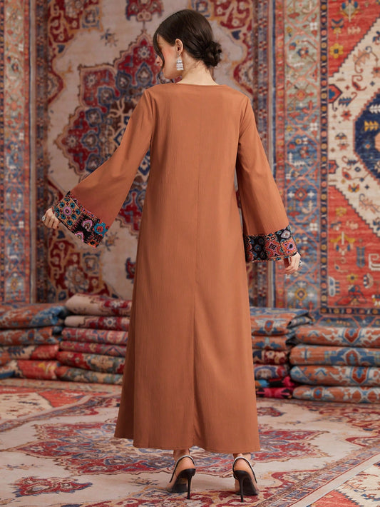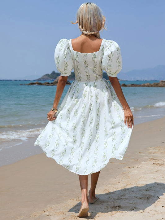 فستان صيفي أنيق بأكمام عريضة وعنق دائري