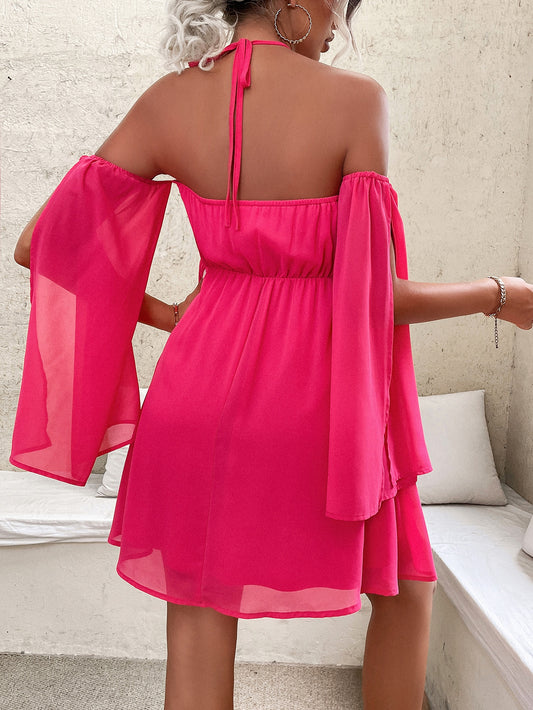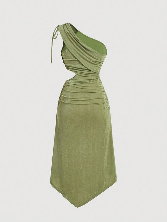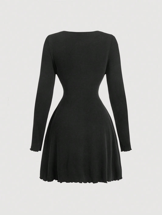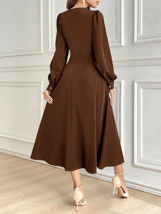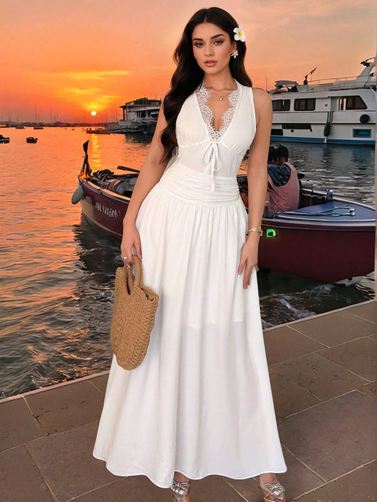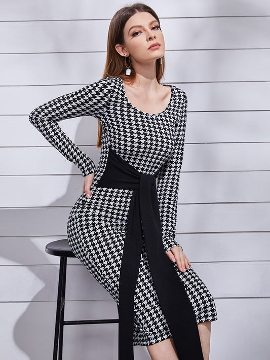 فستان ضيق مربعات مسنن معقود رايات بشق خلفي