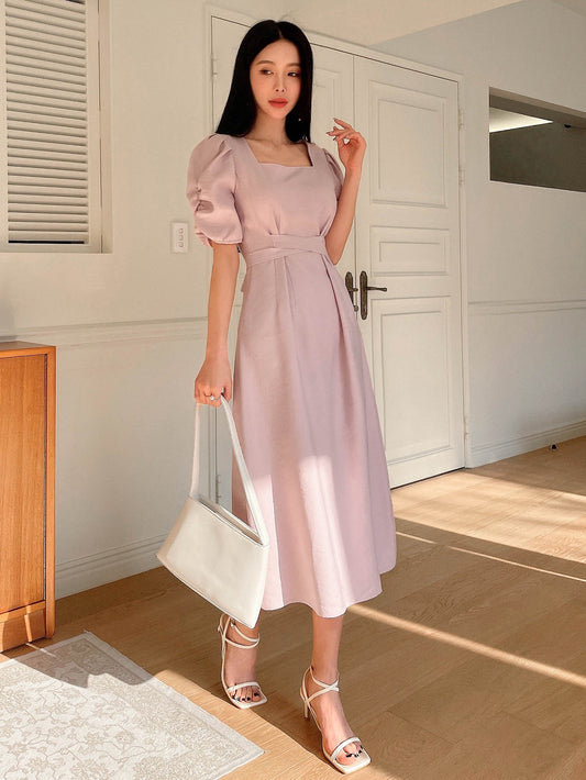 فستان قص مجوف مطوي امامي فتحة للفخذ