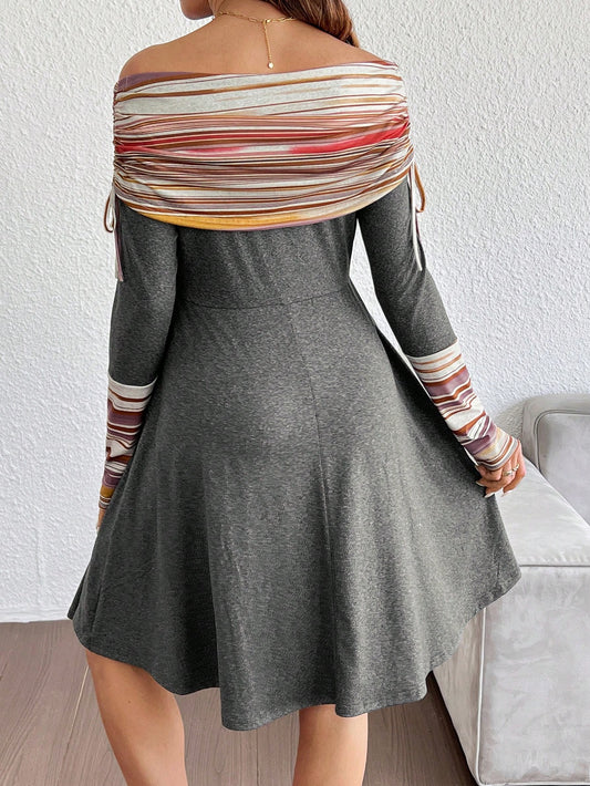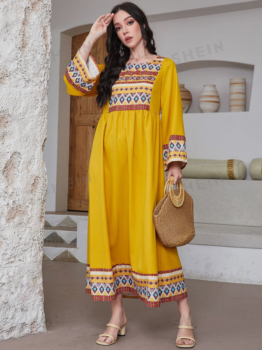 فستان خيمة طباعة النقش لوحة ياقة بفتحة