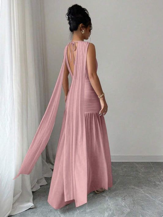 فستان أنيق لحفلات طويل الأكمام ذو أكمام قصيرة