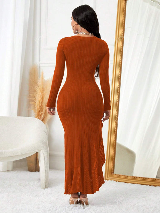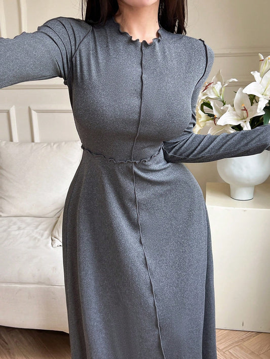 فستان رمادي طويل الأكمام للنساء، للخريف