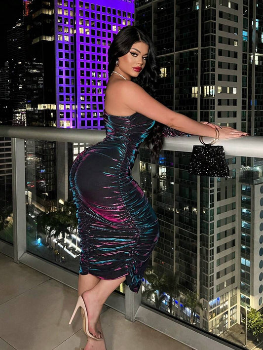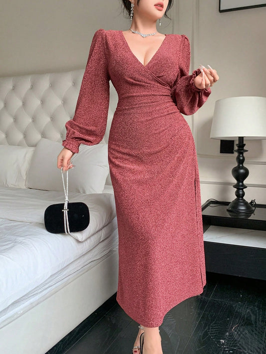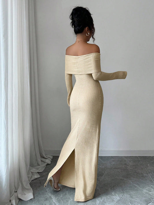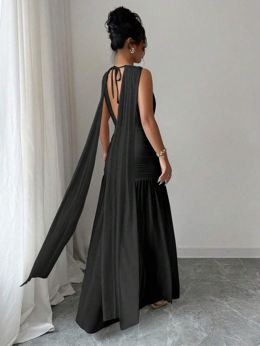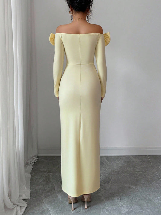فستان أنيق لحفلات طويل الأكمام ذو أكمام قصيرة