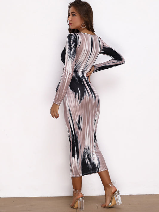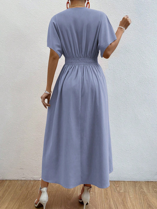 فستان ماكسي اكمام فراشة حافة مكشكشة شيفون