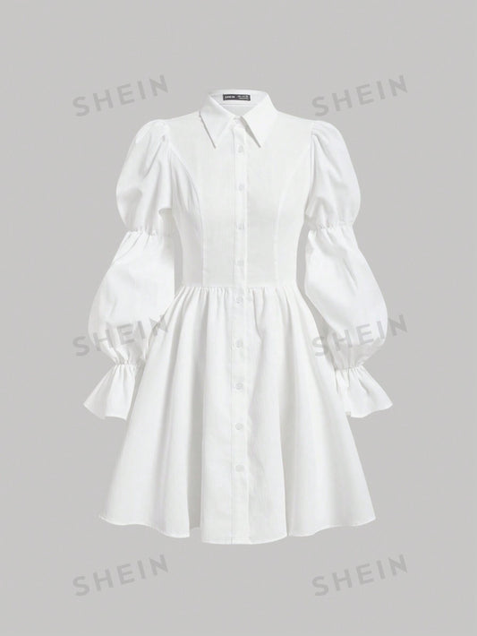 فستان قميص نسائي يتميز بحاشية مزمومة