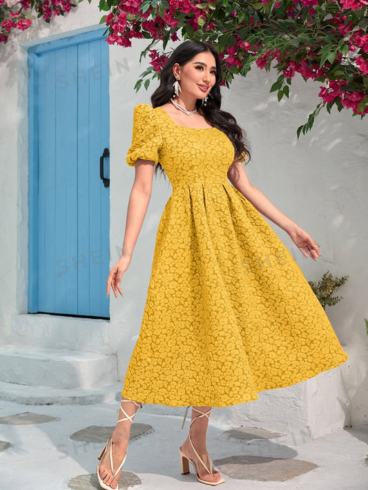 فستان ضيق بأكمام شبكية متباينة ورقبة مربعة