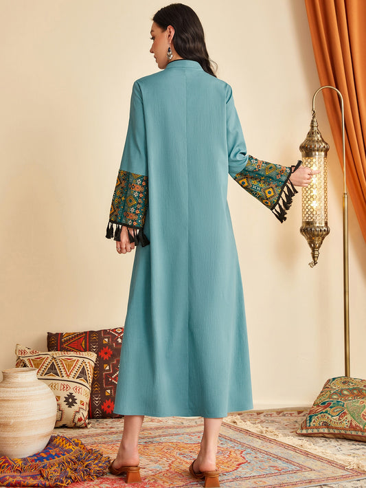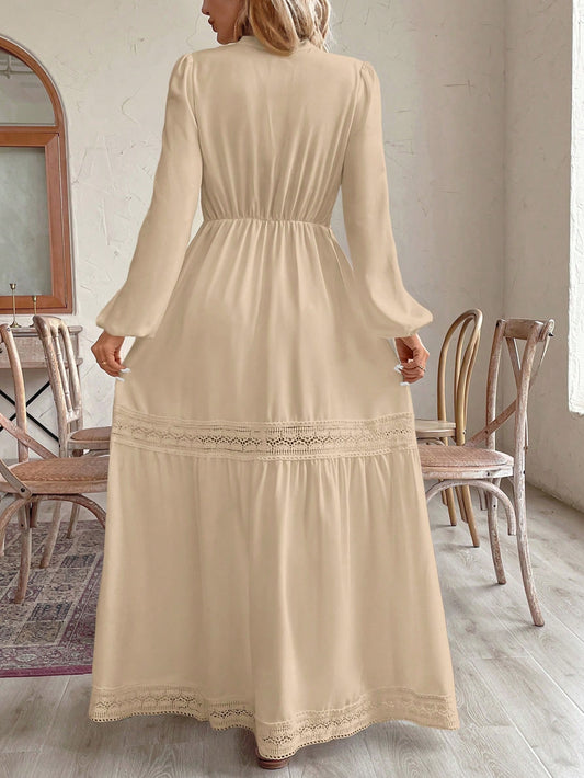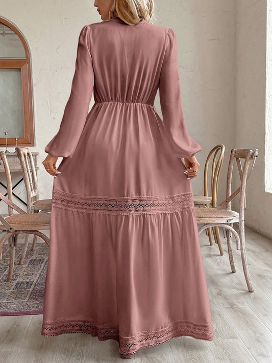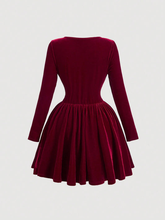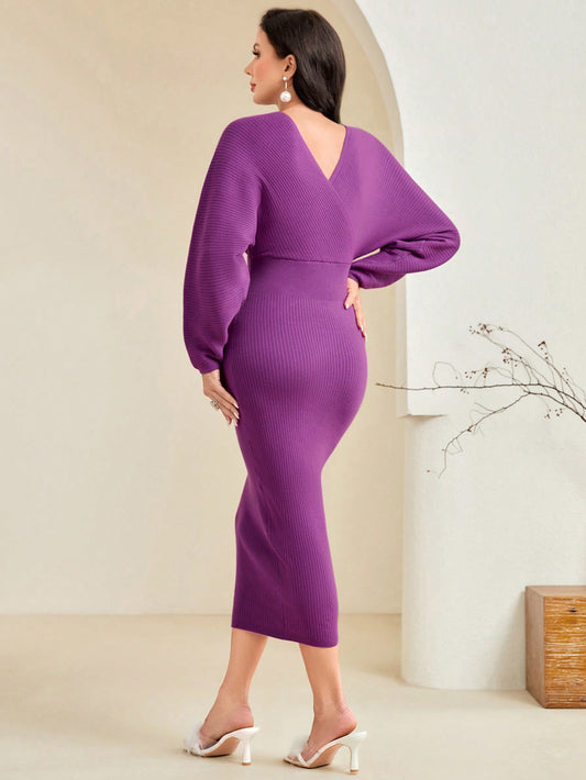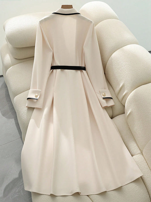 فستان رمادي طويل الأكمام للنساء، للخريف