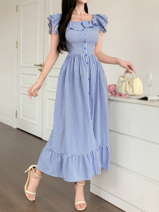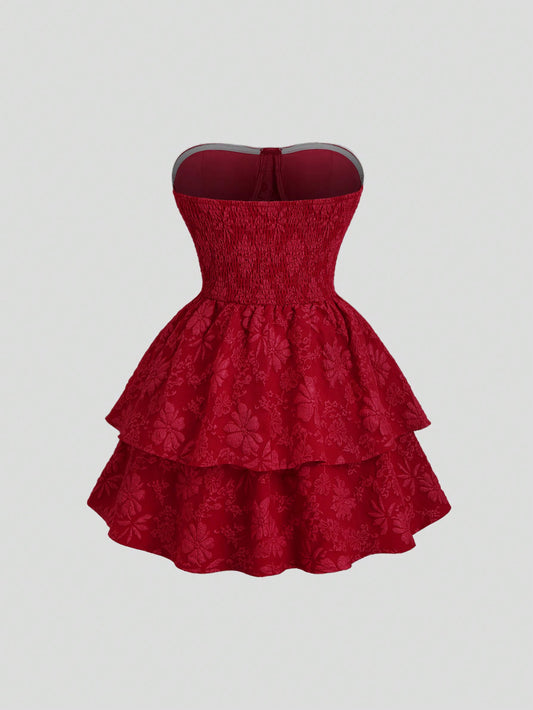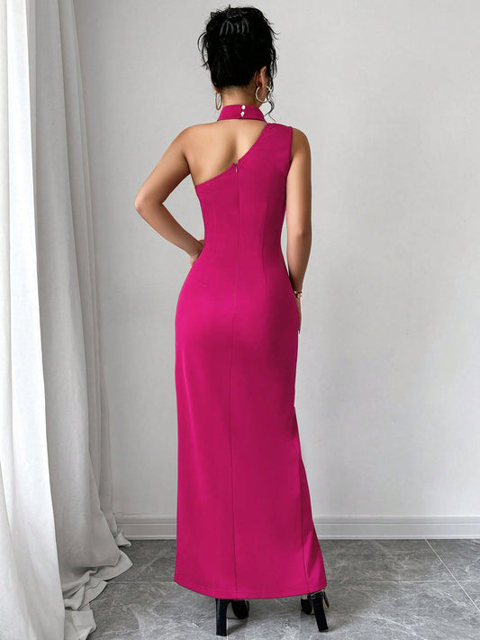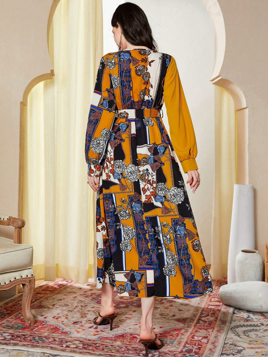 فستان رسمي طباعة هندسية سحاب خلفي 2 في 1