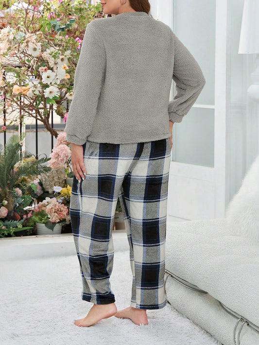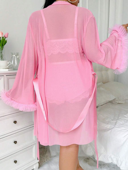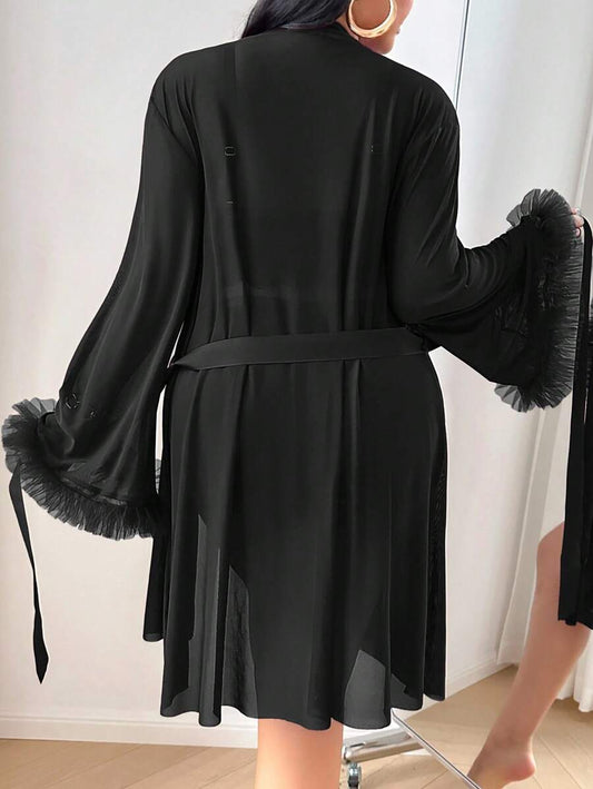 طقم بيجامة نوم من الدانتيل وتصميم الرقع للمرأة متسعة الحجم39,000د.ع23,400د.عخصم