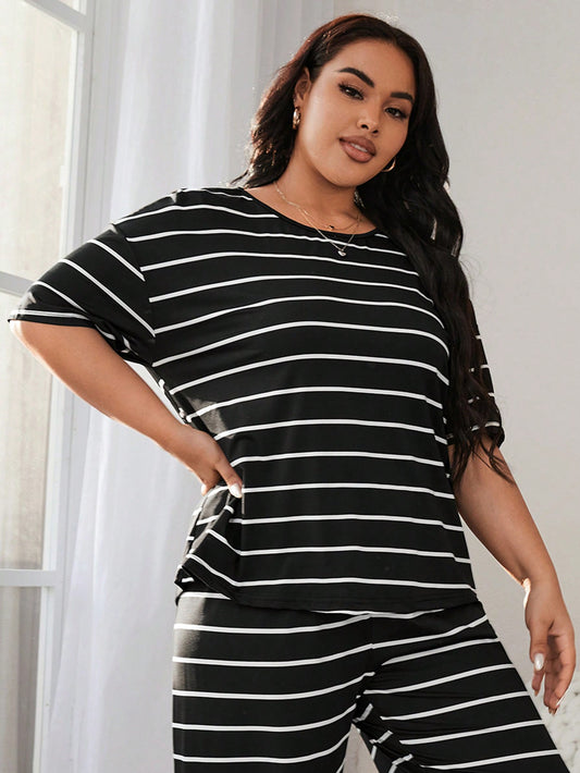 ملابس علوية نوم كبيرة الحجم بأكمام قصيرة مخطط أسود وأبيض22,000د.ع13,200د.عخصم