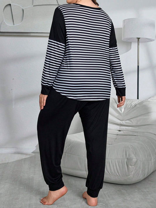 ملابس علوية نوم كبيرة الحجم بأكمام قصيرة مخطط أسود وأبيض19,000د.ع11,400د.عخصم