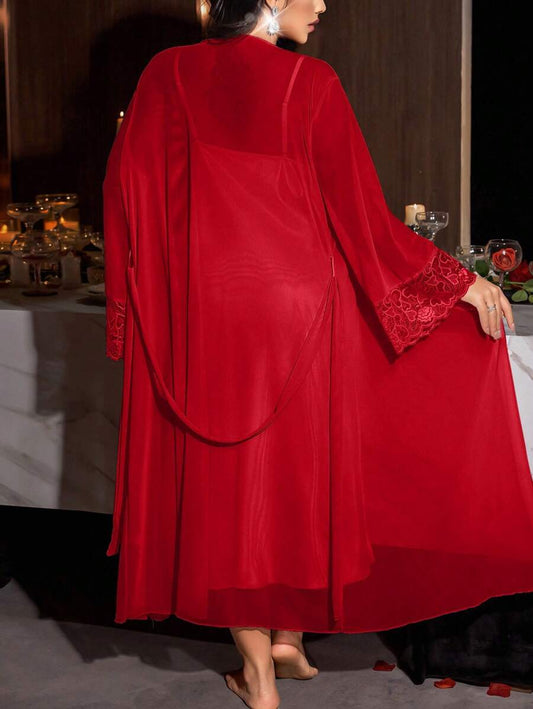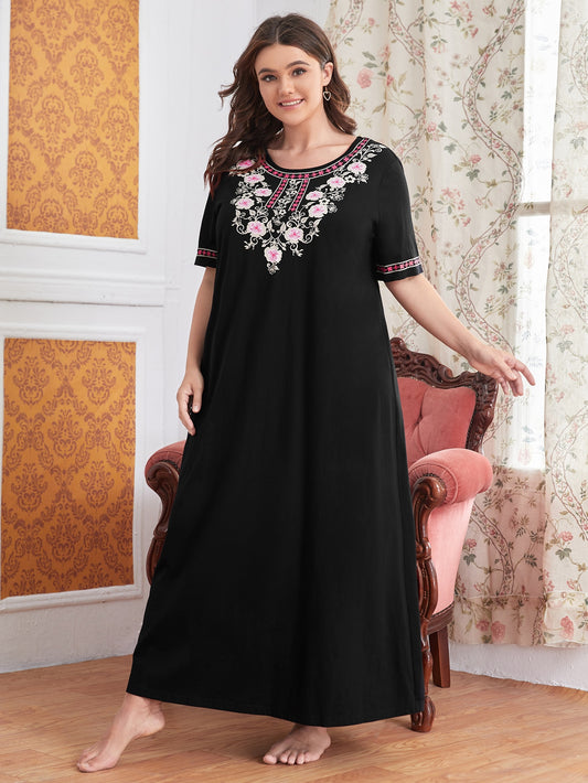 قميص نوم مع روب منزلي مقاس كبير رسم الزهر كاجوال