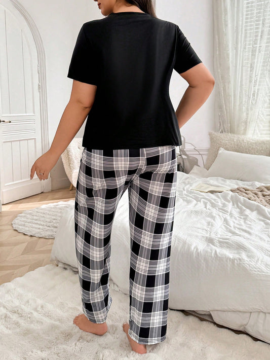 طقم بيجاما بطباعة أحرف للمقاسات الكبيرة