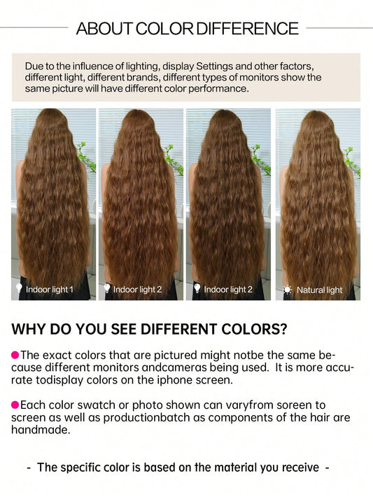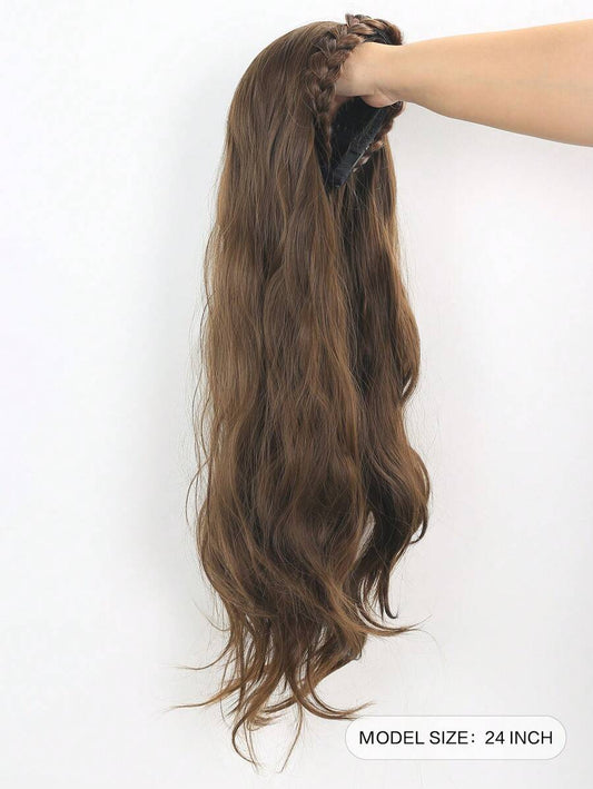 طقم شعر طويل مجعد بطول 28 بوصة بني للنساء