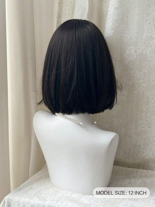 باروكة شعر قصير بلون أسود وبنفسجي بطول 10 بوصة