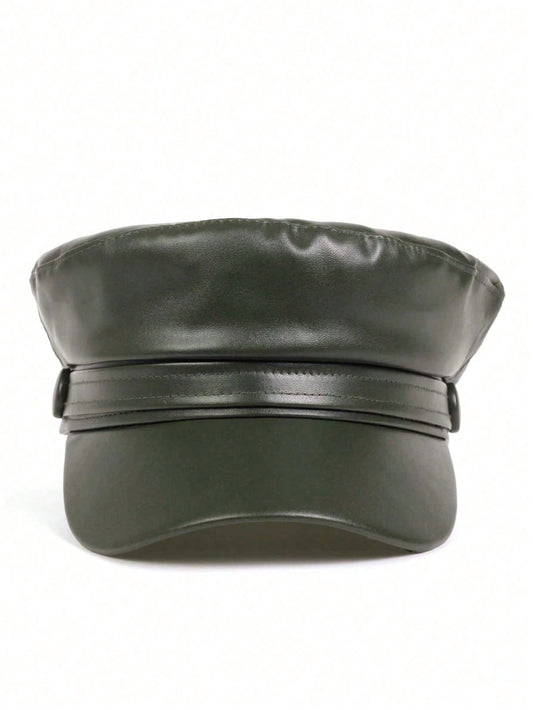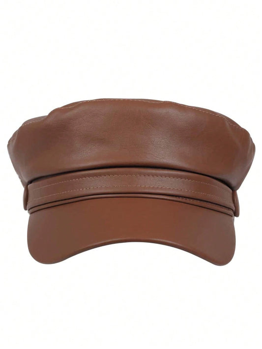 قبعة بيريه جلدية إصطناعية موحدة اللون