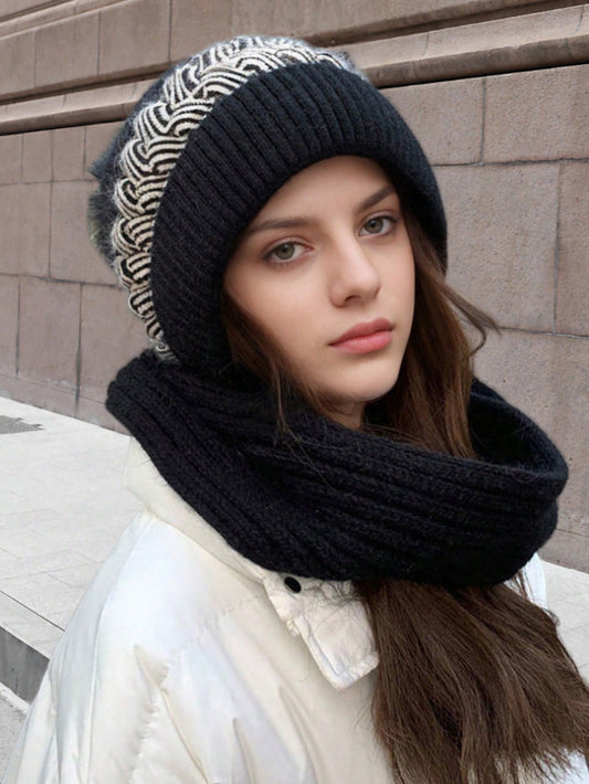قبعة شتوية/خريفية للنساء ذات وشاح وواقيات