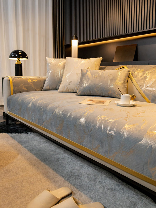 قطعة طقم غطاء أريكة جاكار بحافة ذهبية