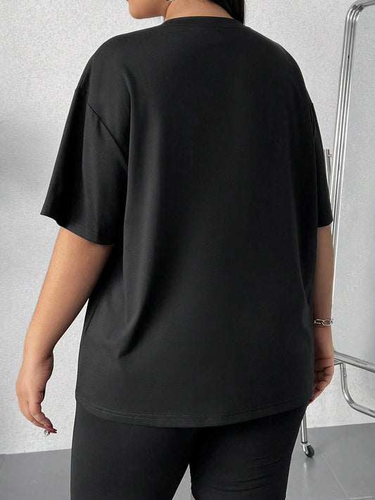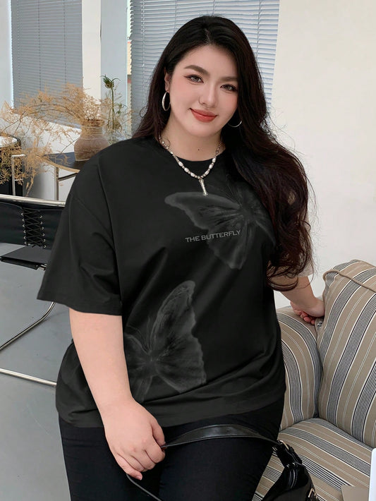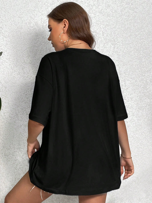 قميص بأكمام قصيرة و شكل حرف مطرز للفتيات مقاس كبير