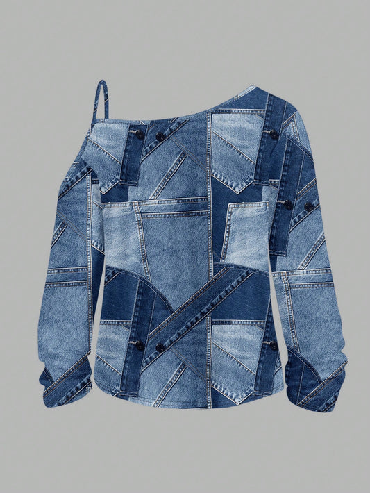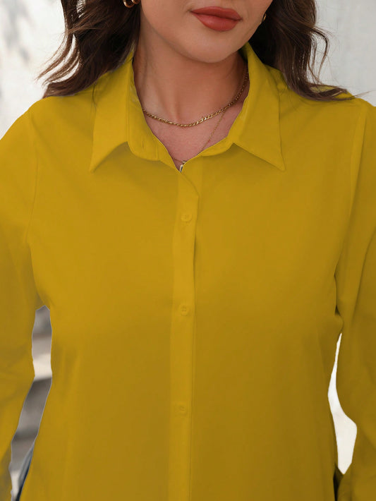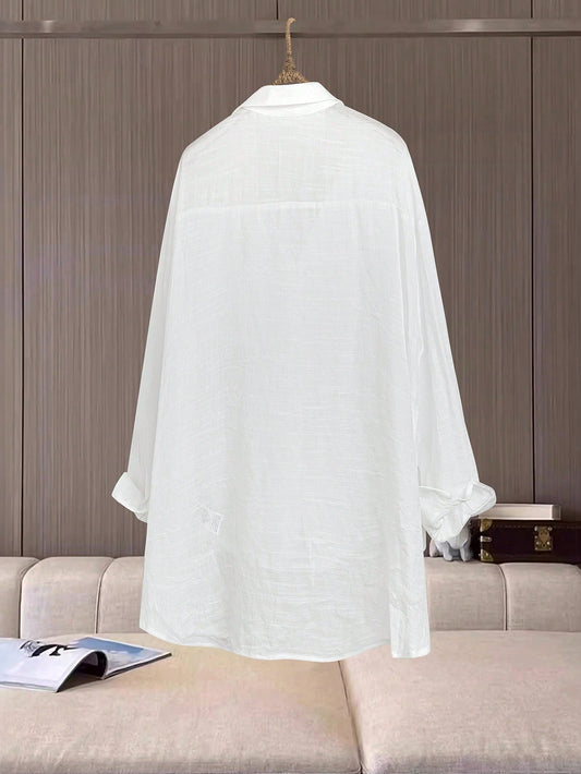 قميص أكمام طويلة بتصميم بسيط لمقاسات كبيرة