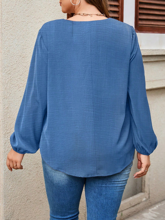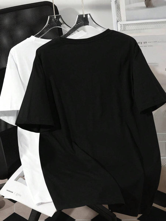تي شيرت موحدة اللون ياقة عنق مقاس كبير