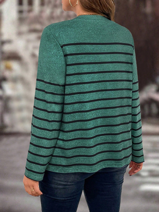 تي شيرت مقلم بكشكش زخارف مقاس كبير