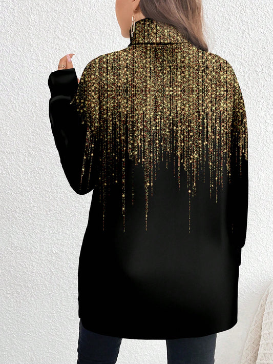 بلوزة فضفاضة بأكمام ترتفع بطبعة زهور صغيرة