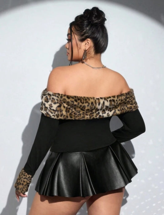 تي شيرت كاجوال بأكتاف مكشوفة ذو لون أحادي مقاس كبير