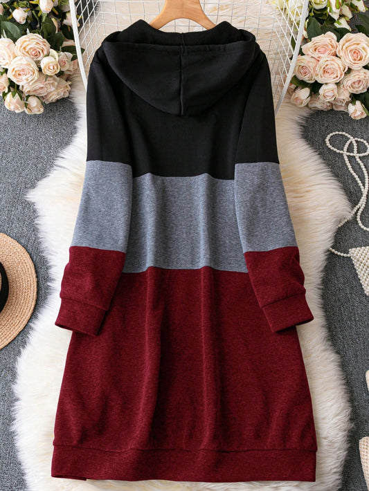 هودي ألوان متباينة سستة رباط مقاس كبير