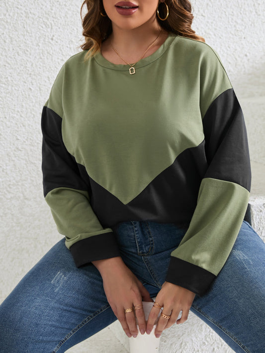 قميص ثقيل ألوان متباينة منخفض الاكتاف مقاس كبير