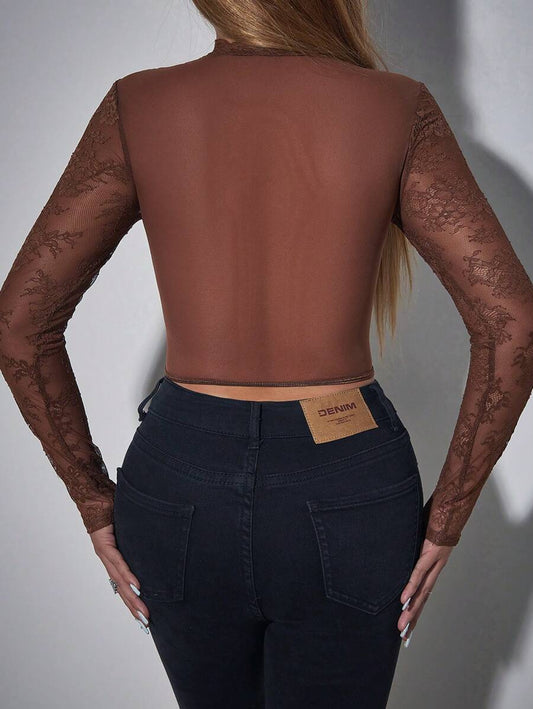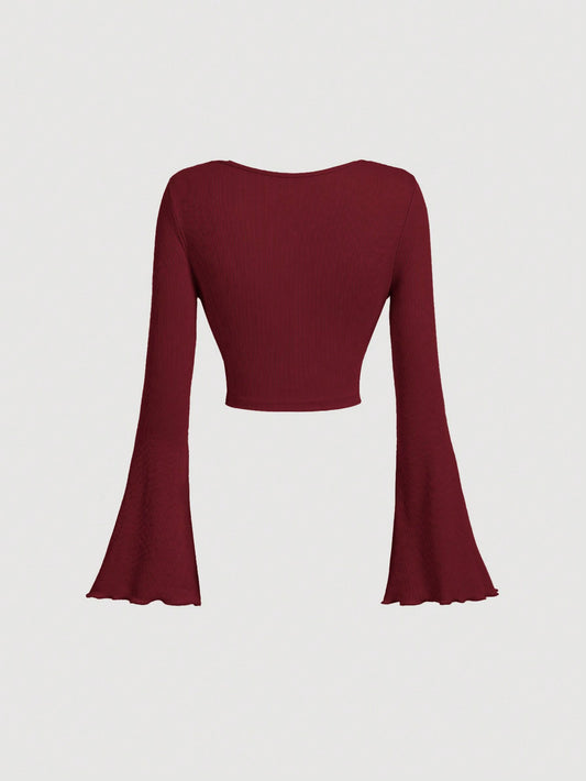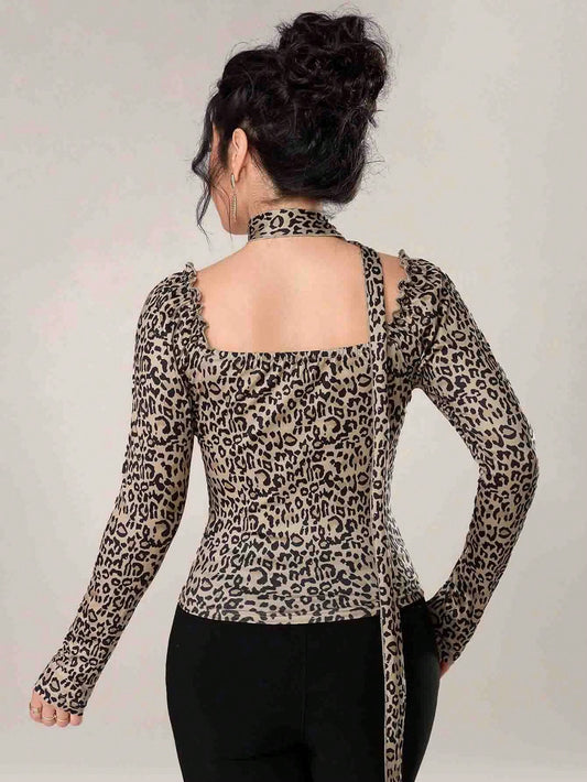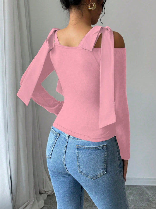 تي شيرت ضيق برقبة غير متناظرة ولون سادة