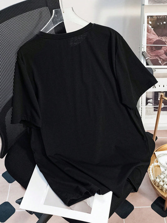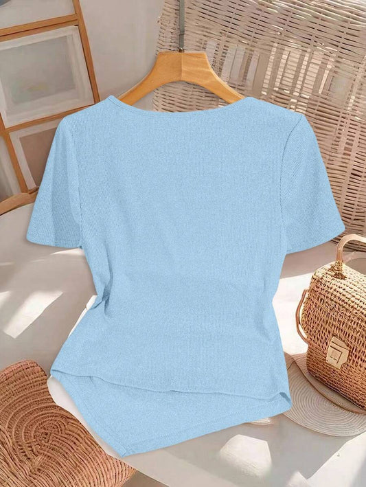 تي شيرت كاجوال للنساء بلون صلب مَطوي، صيفي