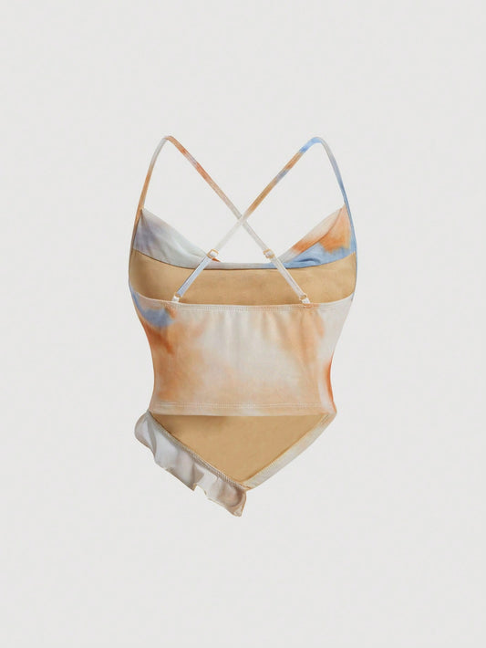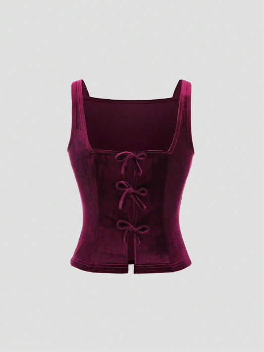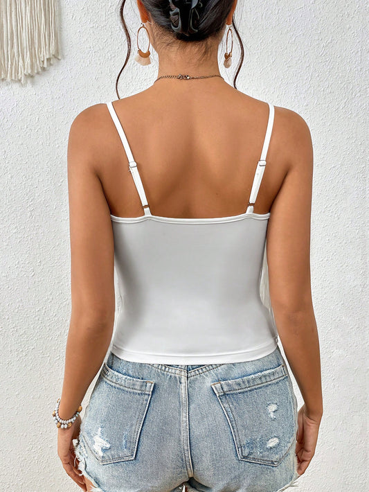 لباس علوي تانك موحدة اللون محبوك مضلع
