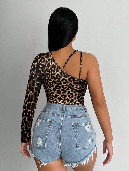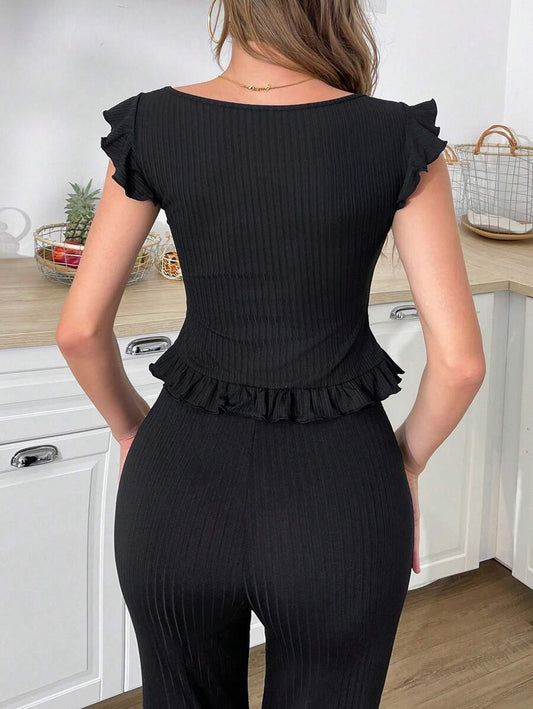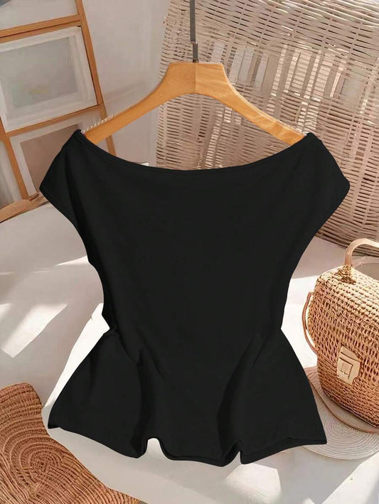 توب بياقة مغرقة وأكمام فانوس وحافة منخفضة وعالي