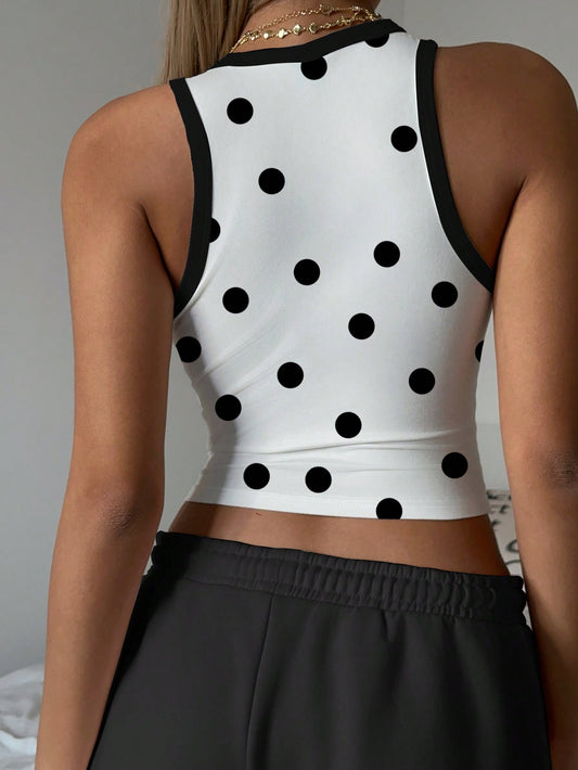 قميص بياقة دائرية بناعم نقاط مطبوعة