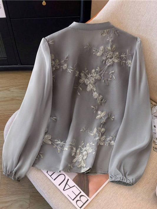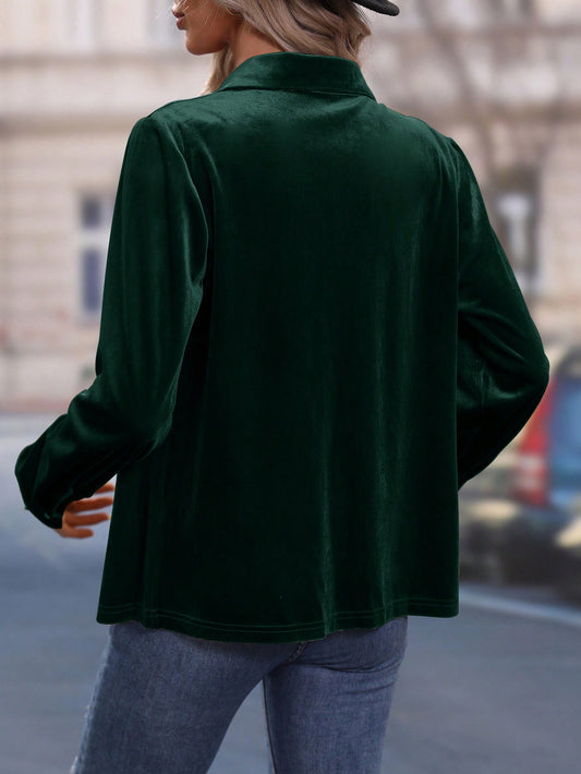 قميص موحدة اللون أزرار أمامية مخملي