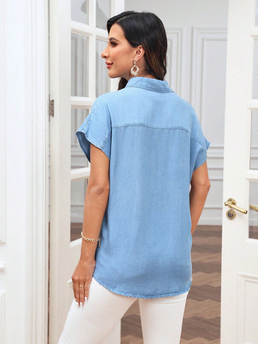 قميص دنيم جيب قلاب أزرار أمامية
