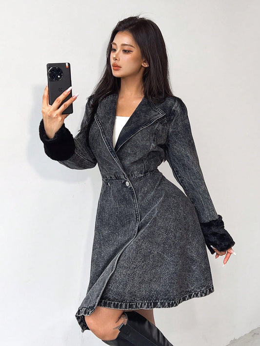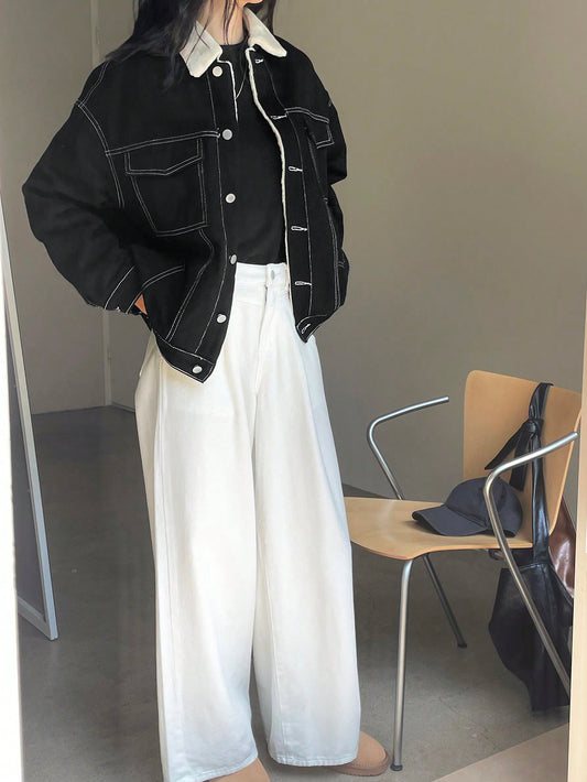 جاكيت جينز تريكر بجيب رفرف بزر امامي