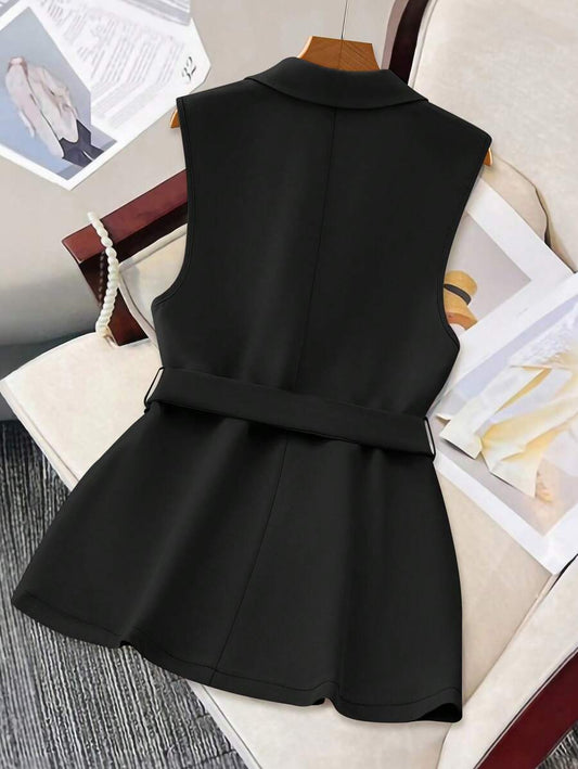 معطف خارجي أسود من الشيفون