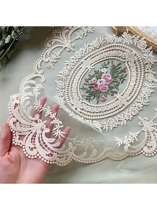 حصيرة كأس موديل فرنسي مطرز روز بيضاوي