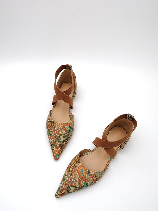 صندل نسائي بكعب خنجر مزخرف بأحجار الراين