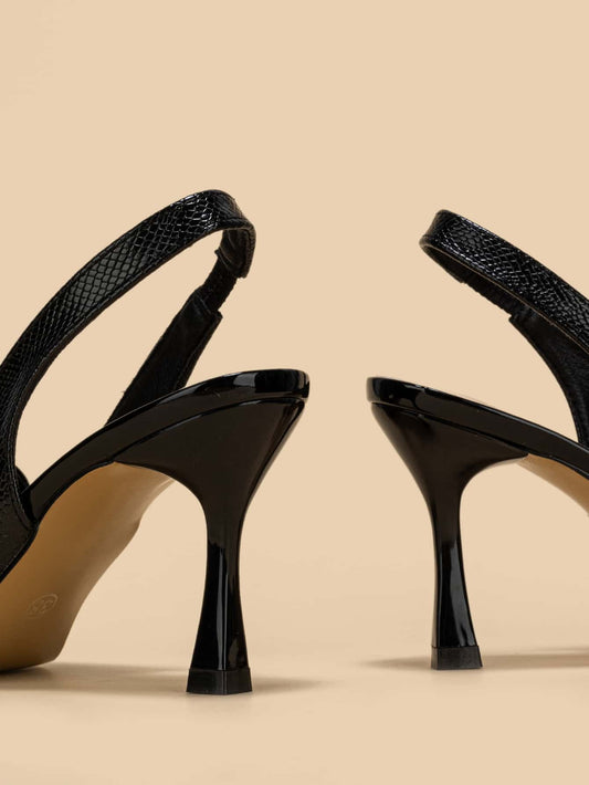 صنادل كعب نحت حزام كاحل أنيق أسود نساء