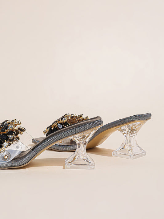 صندل نسائي ذو سلسلة معدنية مزخرفة