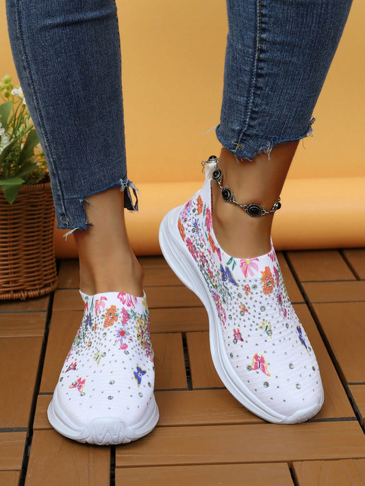 حذاء رياضي نسائي غير رسمي سهل الانزلاق بطبعة فراشة وزهور