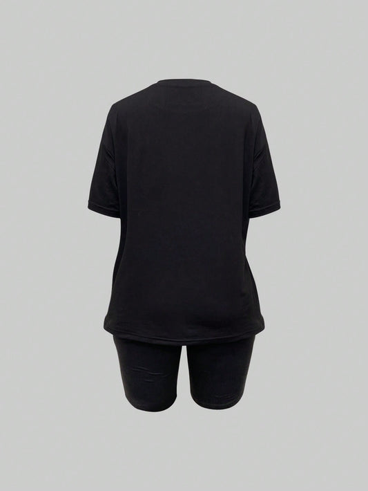 تي شيرت بطباعة أحرف و تنورة بحافة مشقوق