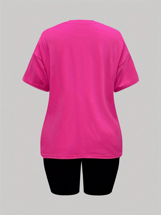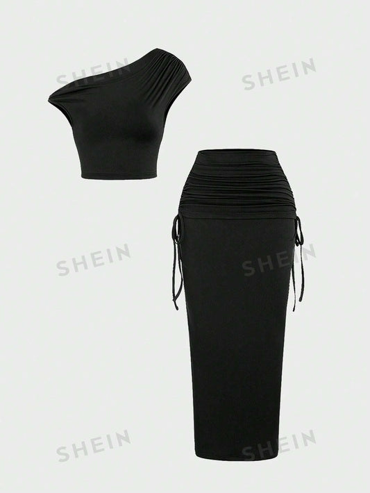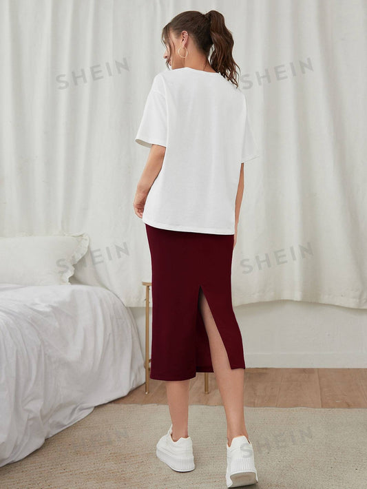 تنورة بحافة مشقوق مع تي شيرت بجرافيك عبارة
