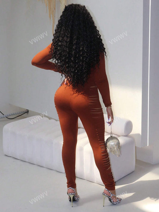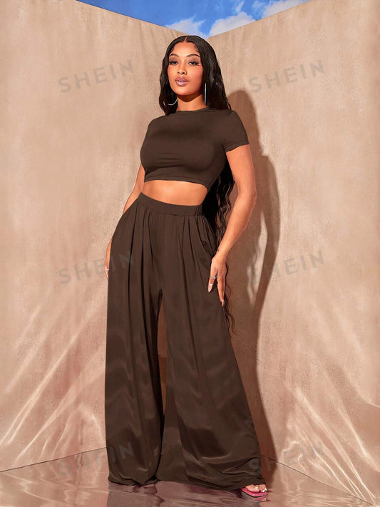 هوديي مرقع بأكتاف منسدلة وسروال ساق واسع