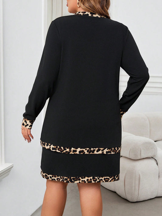 مجموعة قطعتين فستان بطبعة نمر وقميص أسود